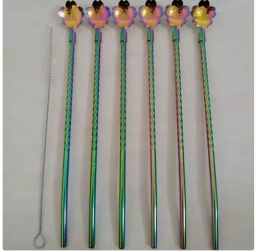 نی قاشق دار شربتی ۶ تایی یونیک طرح هفت رنگ