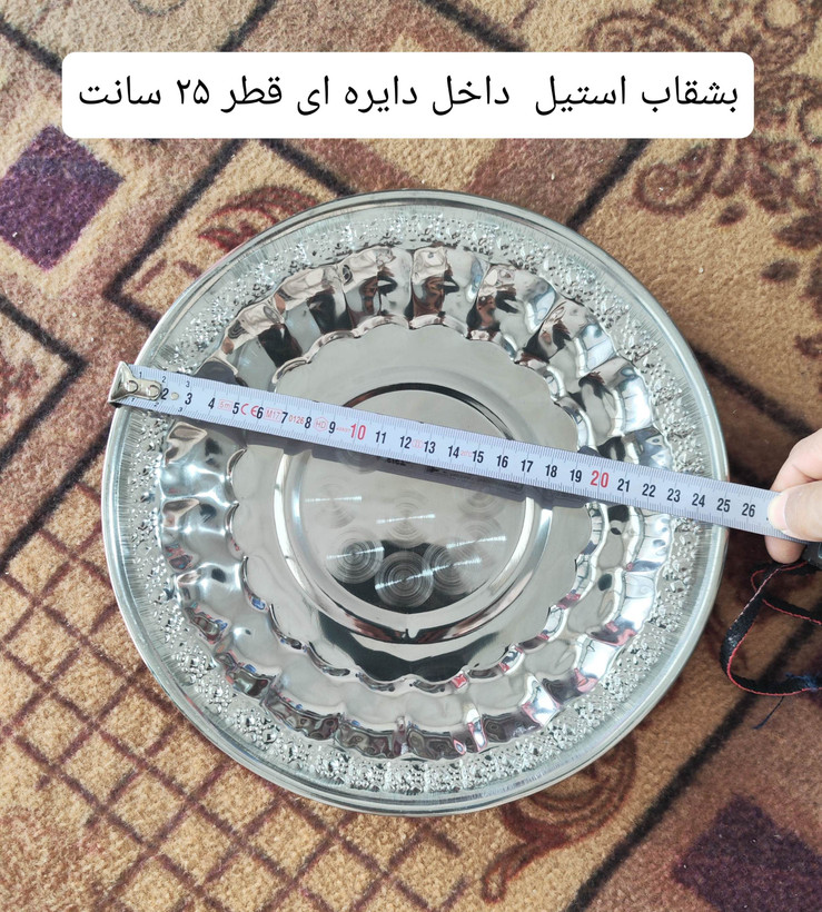 بشقاب استیل طرح داخل دایره ای قطر ۲۵ سانت ( دانه ای )