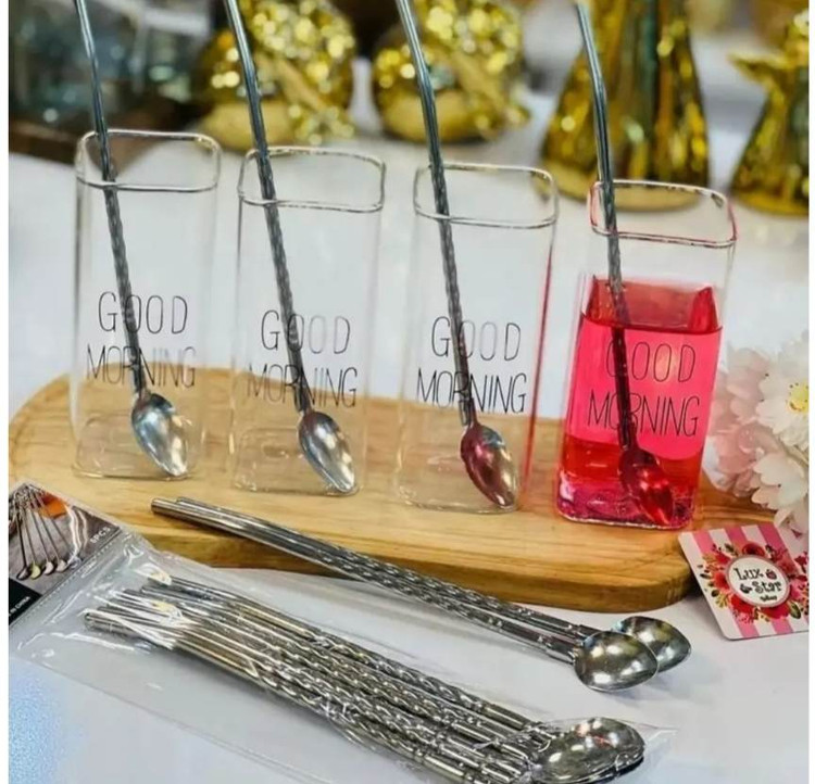 نی قاشق دار شربتی ۶ تایی یونیک طرح نقره ای