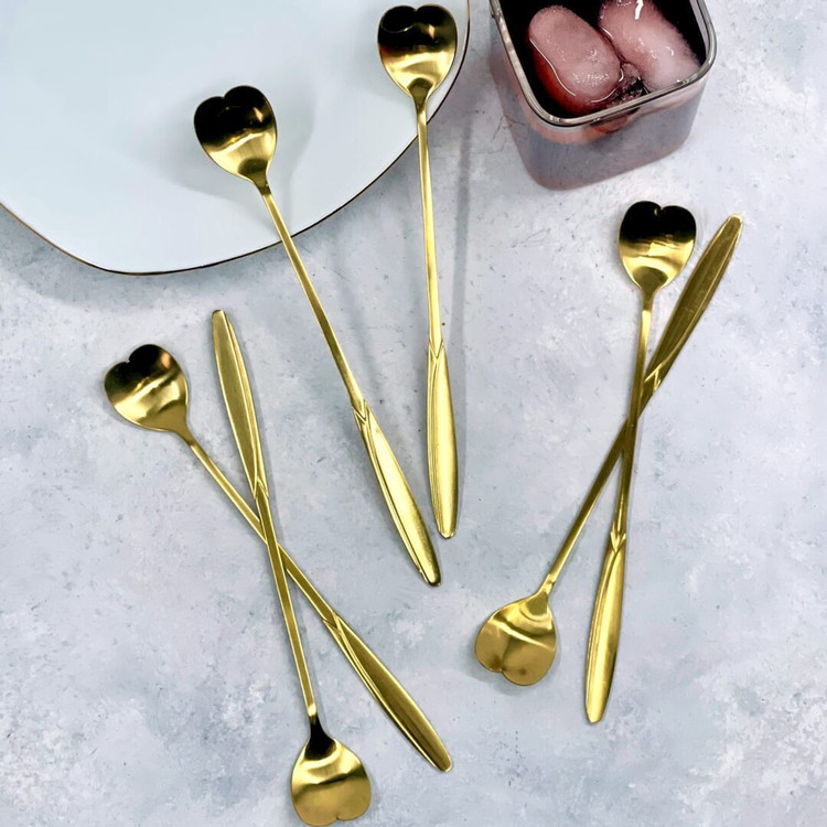 قاشق شربت خوری استیل طلایی طرح قلب